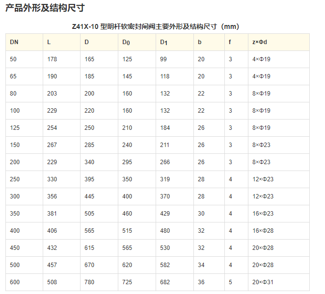 Z41X-10、Z41X-16Q 型明(ming)杆軟密封閘閥:手(shǒu)動、法蘭連接、明杆(gǎn)楔式剛性單閘闆(pan),閥座密封面材料(liào)👌為丁晴橡膠,公稱(chēng)壓力 PN10,閥體材料為(wei)鑄鐵(Z41X-10)、球墨鑄鐵(Z41X-16Q)的(de)軟密封閘閥。
